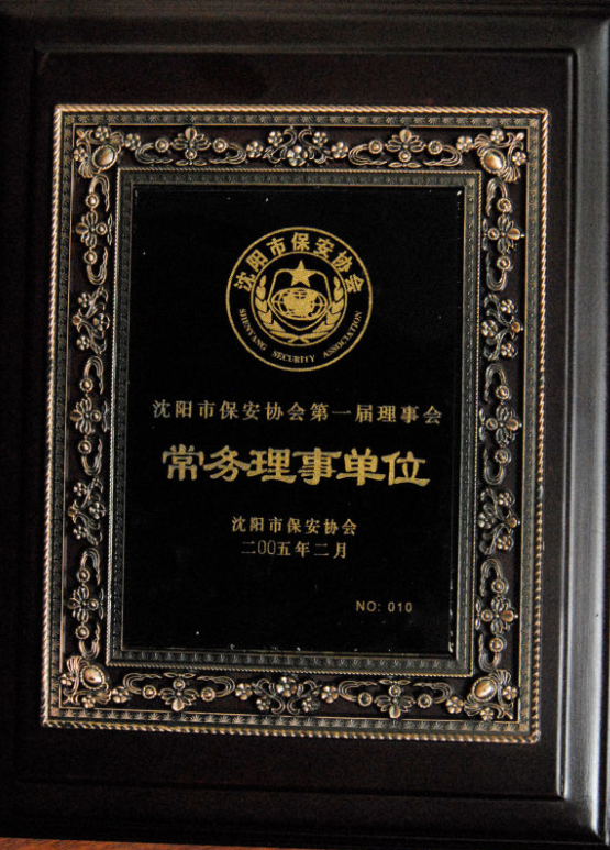 1、2004年,公司被推選為中保協會員單位,省市保協常務理事單位;   2、04年至今,公司被市工商局評為“重合同守信用”免檢單位;  3、04年至今,公司連年被省廳授予“全省優秀保安公司”;  4、04年至今,公司連年被市局授予“沈陽市十佳保安公司”; 5、2008年,公司被省廳、市局授予“奧運安保先進單位”;  6、2009年,全市保安系統績效考評中,公司以佳績贏得“流動紅旗”;